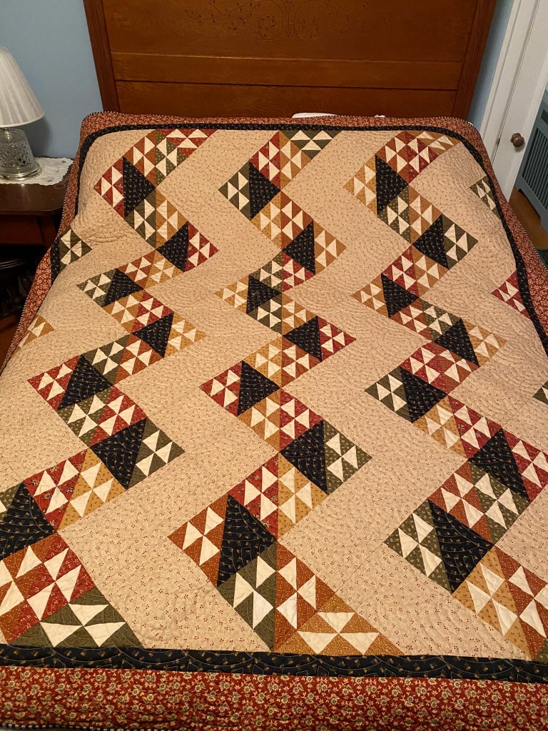 We plan to have demonstrations, a bed turning (vintage quilts shown and described), Fabric at $3/yard. Also quilt kits, quilt gift items, quilts for sale, etc. Tickets for our Opportunity Quilt “Wandering Way” will also be available. $1 each or 6 for $5. Drawing in early December.